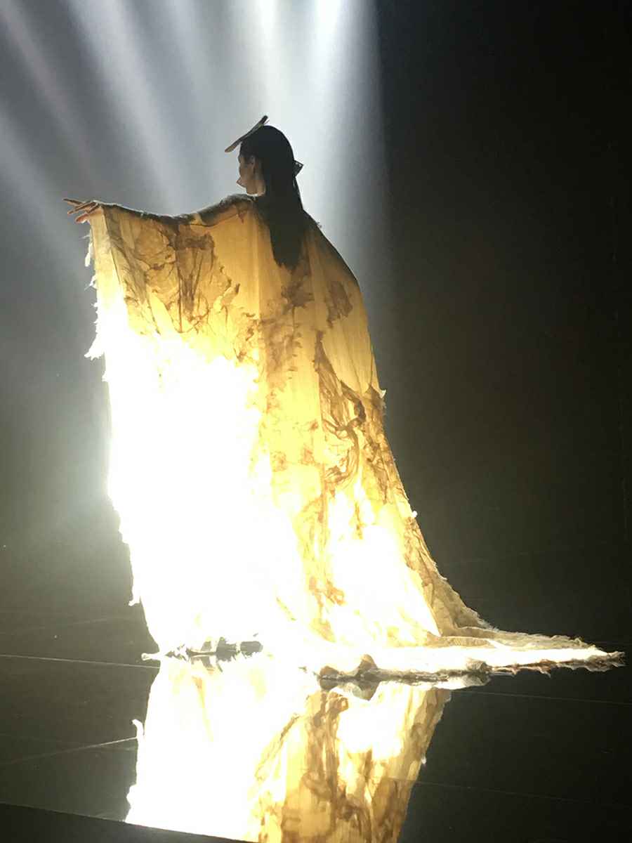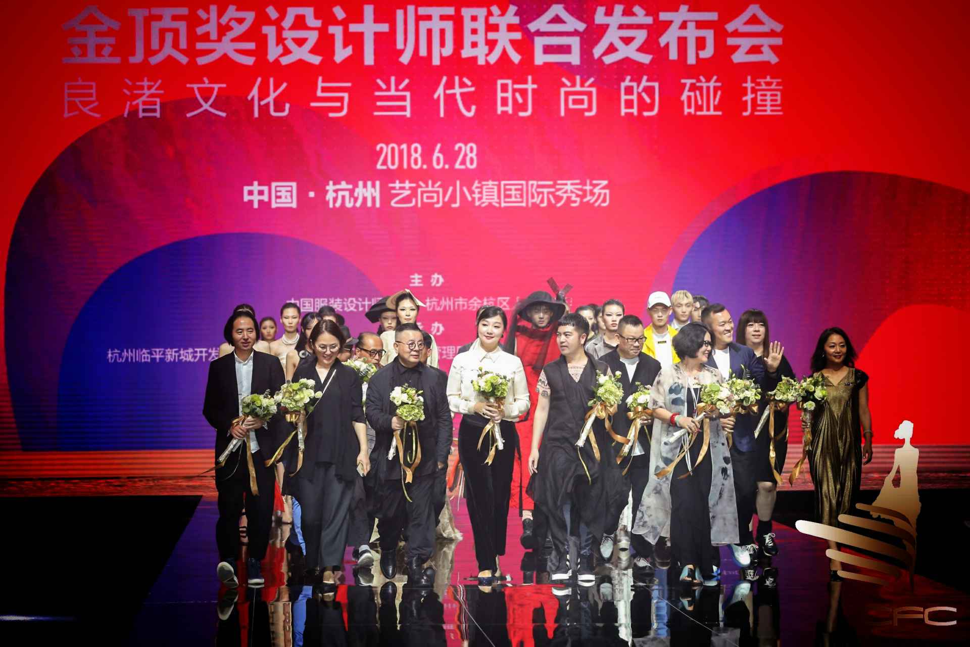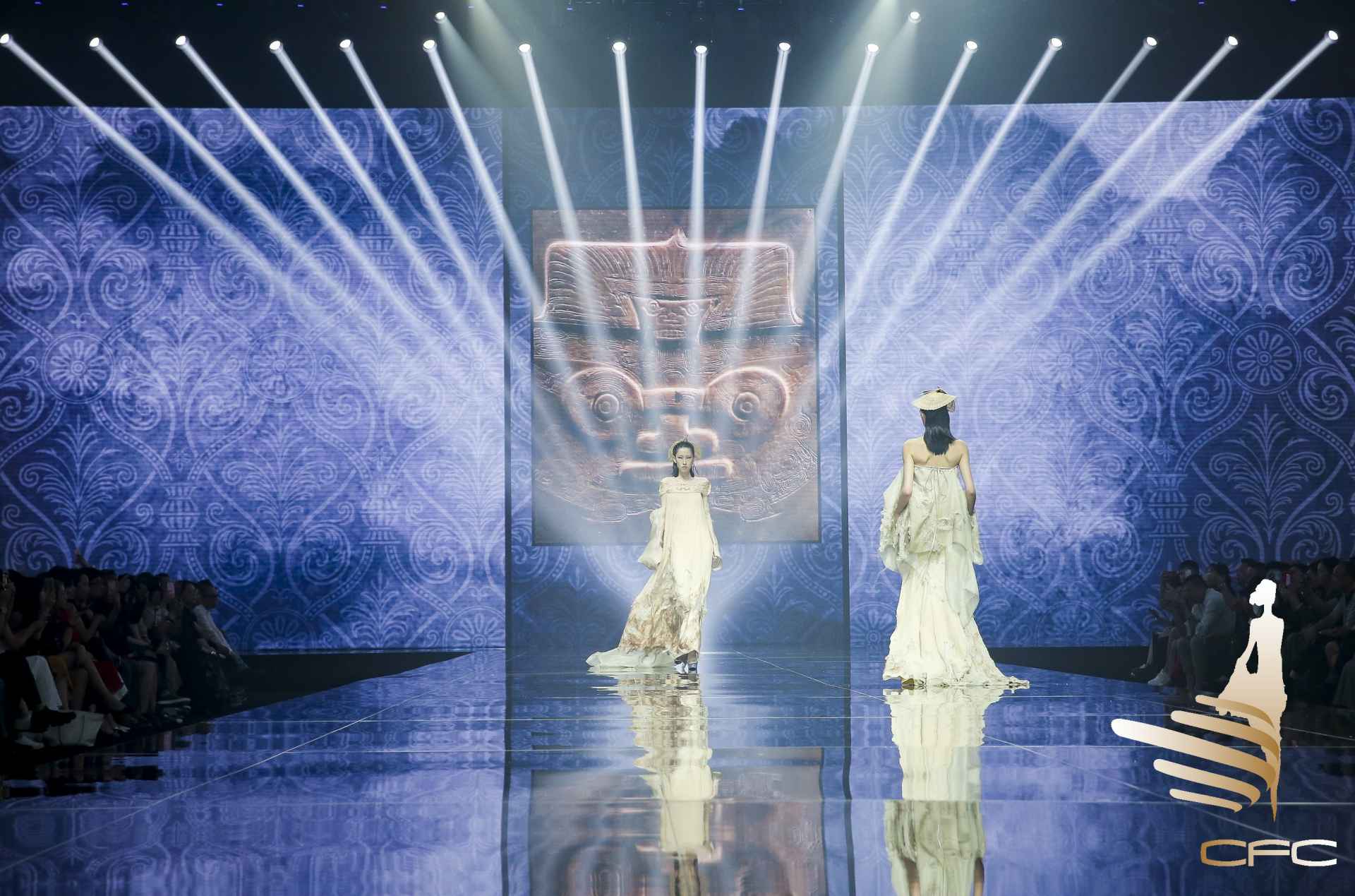 当晚金顶奖设计师联合发布会,欧柏兰奴和LUOZHENG华服,联合发布了以弘扬良渚文化为主题的设计大秀。